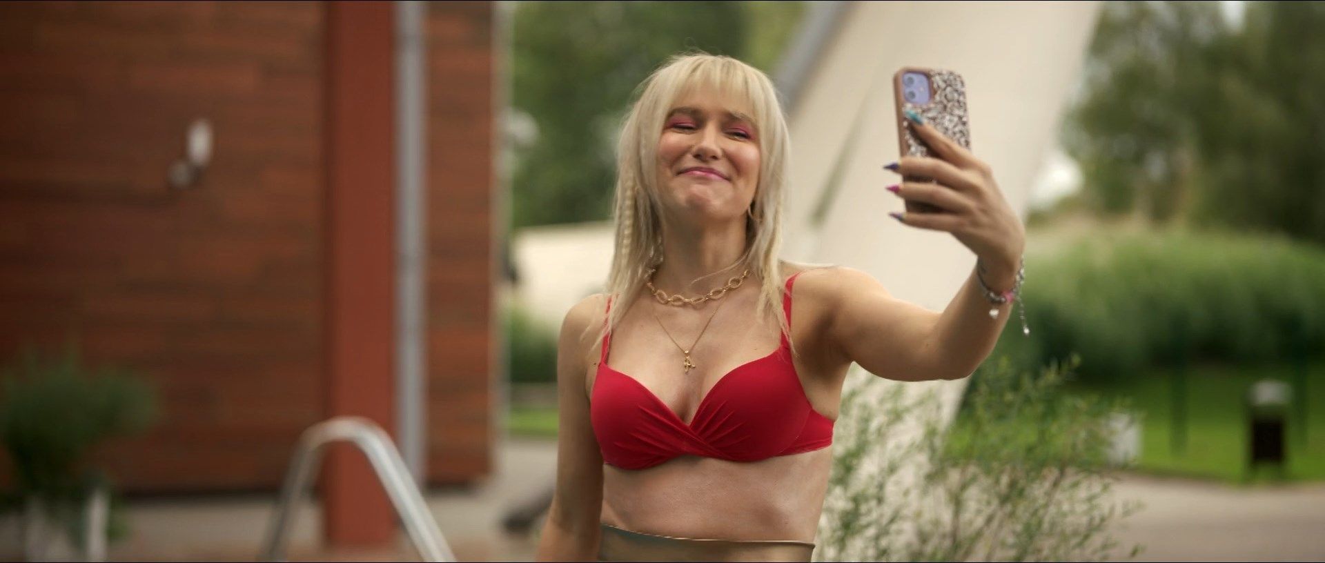 Актриса также активно делится контентом в Инстаграм, где публикует откровенные фотографии, включая съемки в нижнем белье и без одежды, прикрывая интимные зоны. Одной из самых запоминающихся ее работ является сериал «Я заберу твою любовь», где она снялась в откровенном красном нижнем белье.