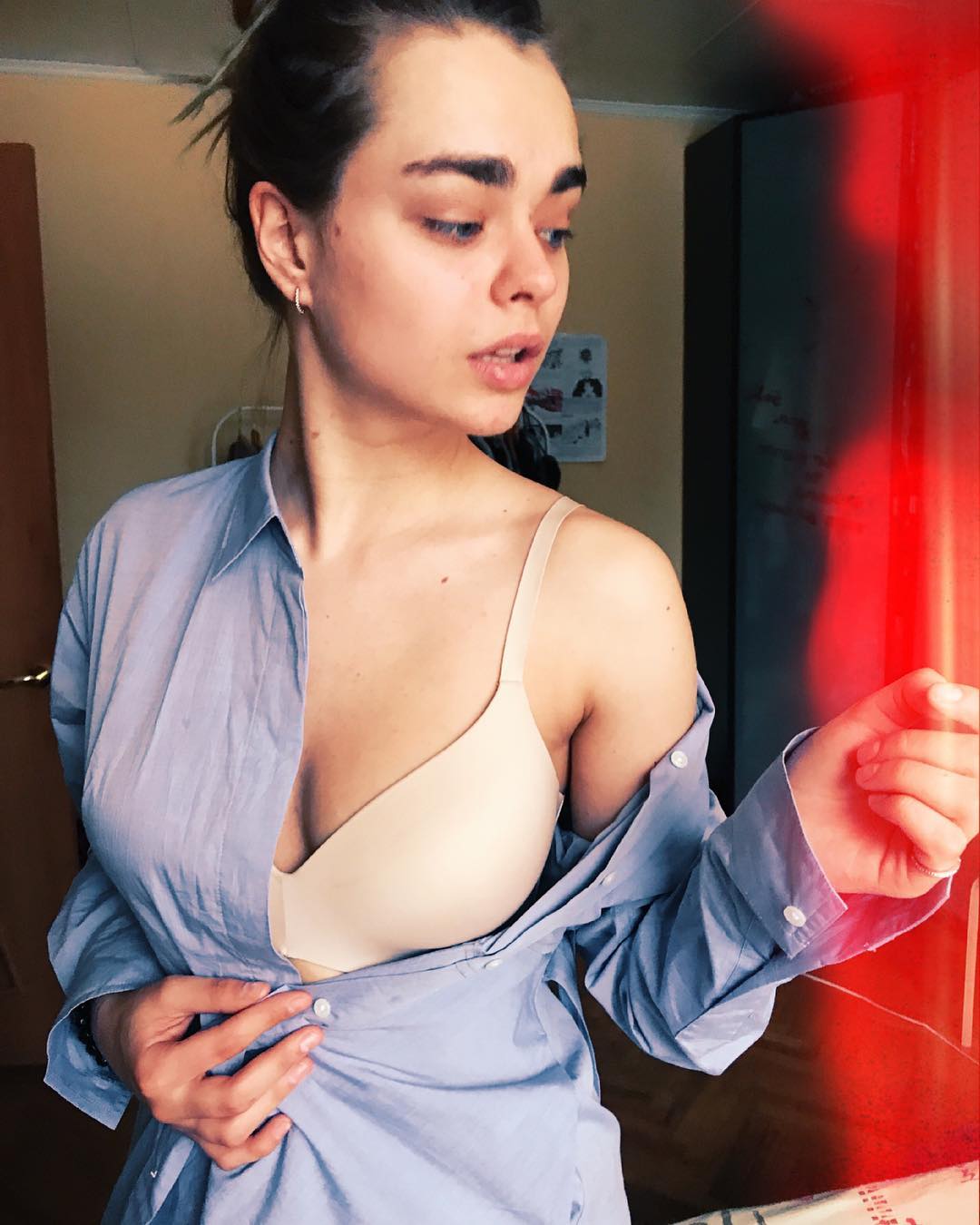 Горячева известна своей фигурой и особенностью в виде вызывающих бровей. Она активно публикует эротические фотографии в нижнем белье и купальниках и часто появляется без лифчика.