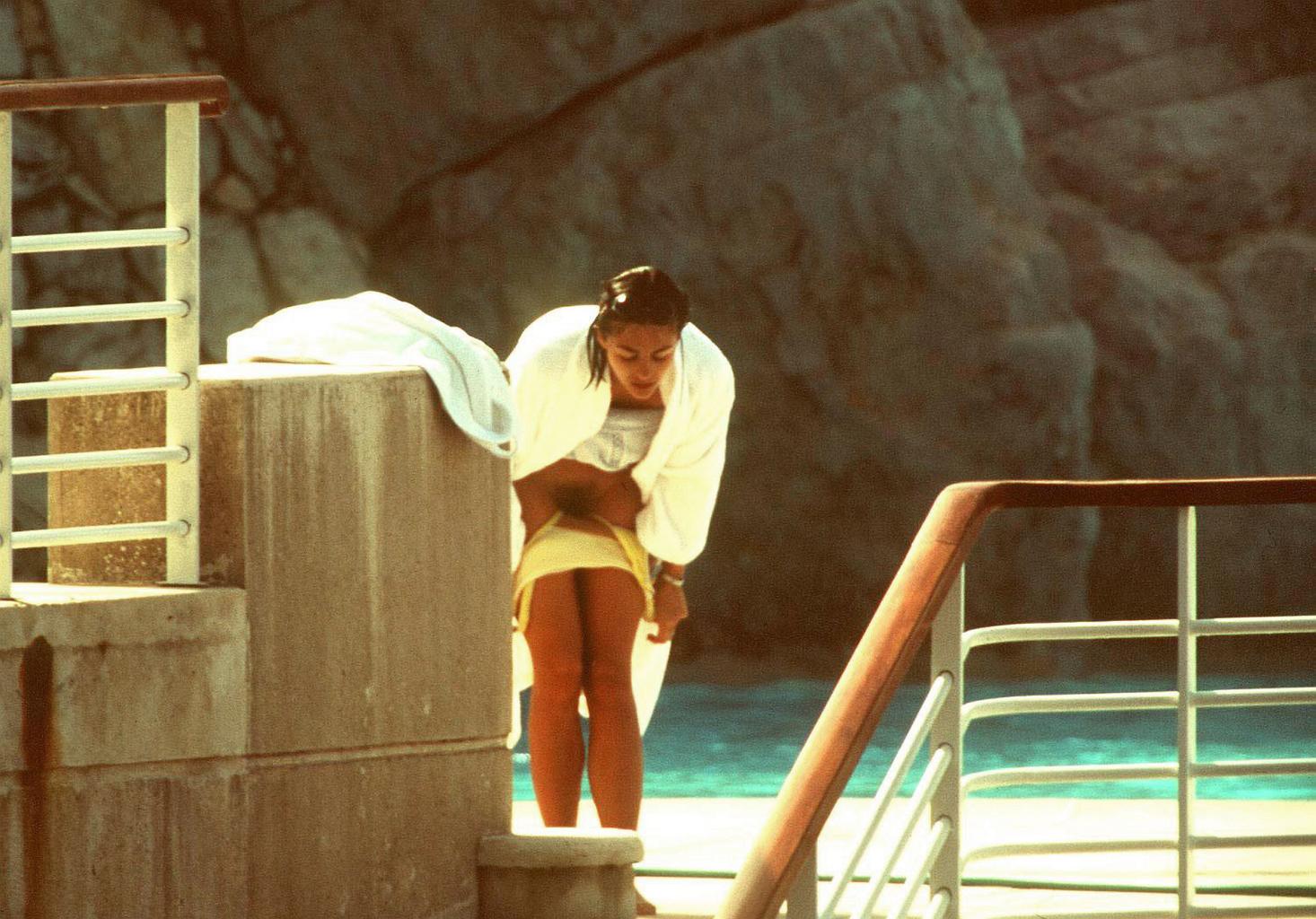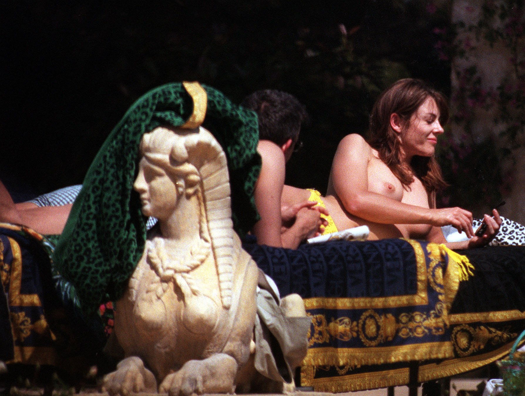 Элизабет Лиз Херли снялась в фильмах «Вес воды», «Бешеные псы и англичане», «Грести по ветру» и «Ария», где представлены эротические сцены с её участием. Папарацци также запечатлели актрису во время отдыха, когда она загорала топлесс.