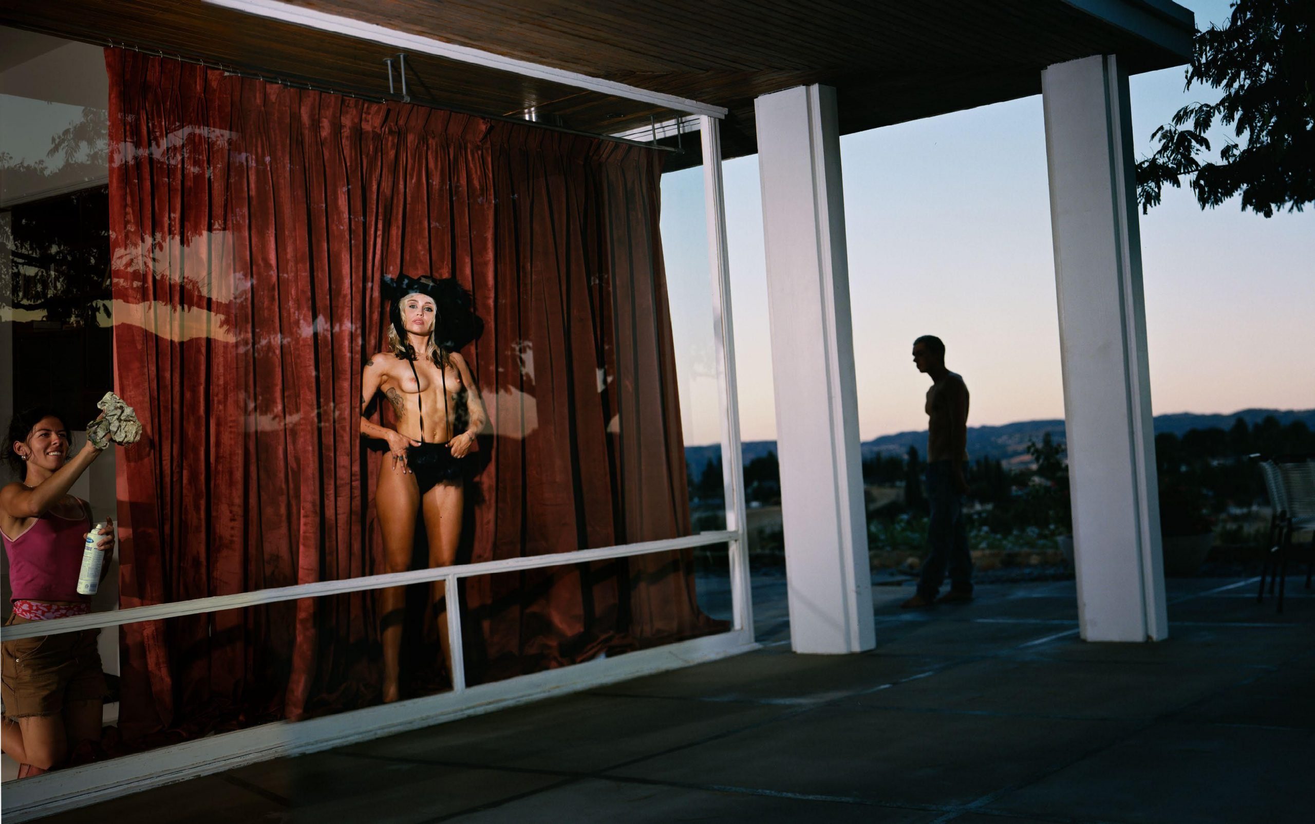Майли Сайрус - американская певица и актриса, известная благодаря сериалу «Ханна Монтана». В её карьере имели место инциденты, включая утечку интимных фотографий, которые были украдены хакерами. Также она участвовала в откровенной фотосессии с фотографом Терри Ричардсоном и появилась обнаженной в клипе «Wrecking Ball».